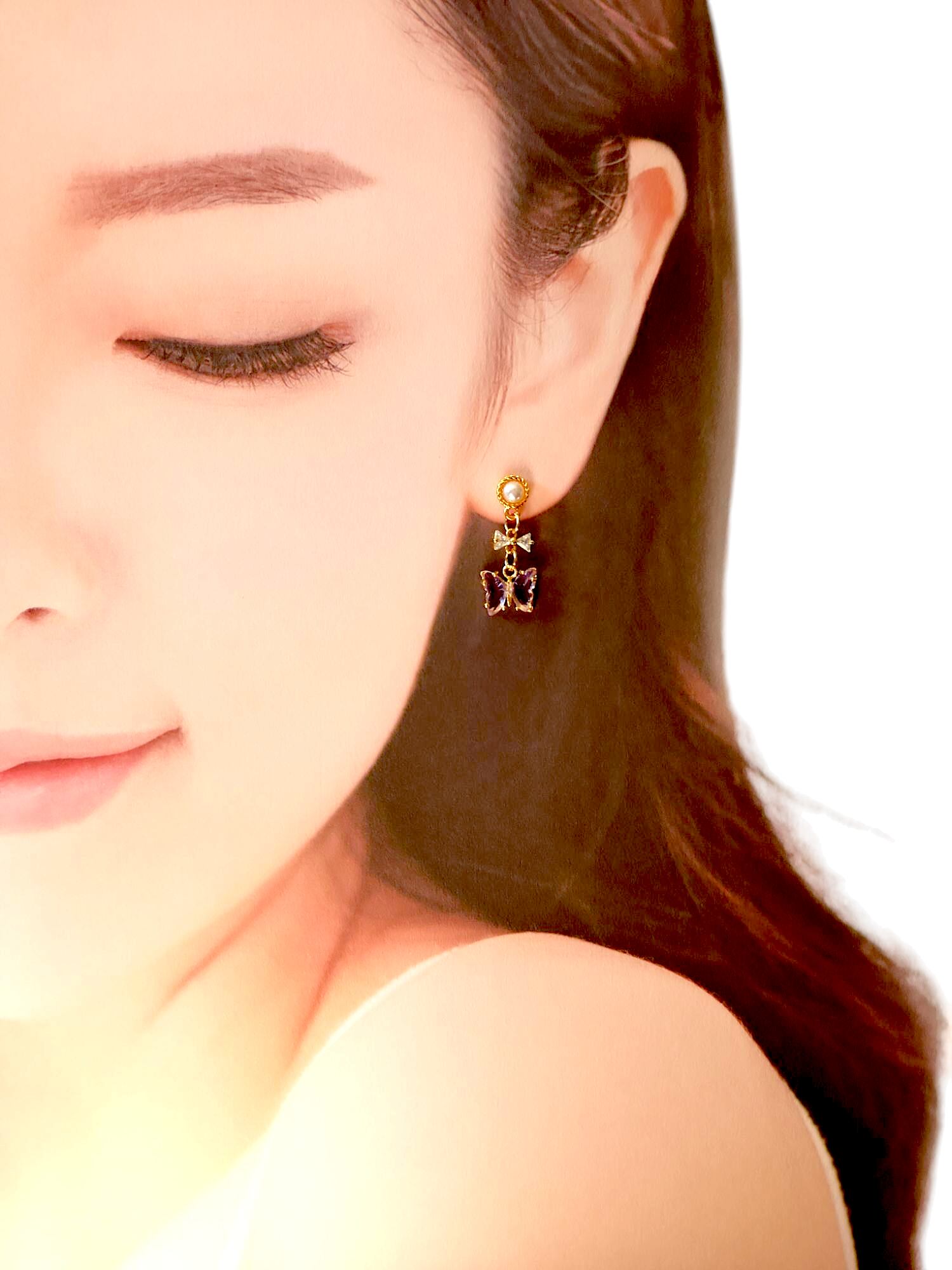 #ハンドメイドピアス #バタフライ #ピアス #アクセサリー #かわいいピアス #パープル #お出かけ #デート #パーティー #プレゼント #ギフト #10代 #20代 #30代 #女子 #特別な日