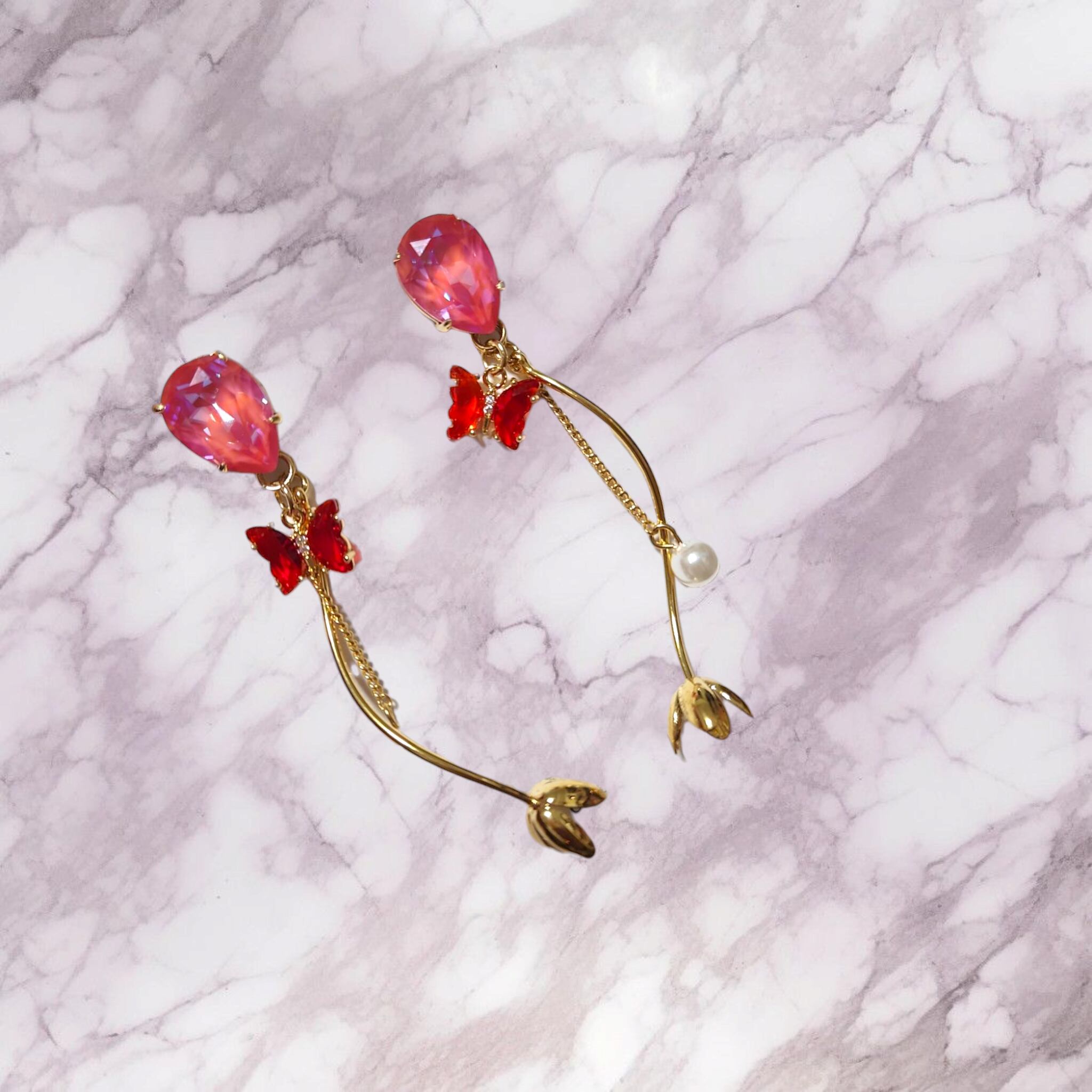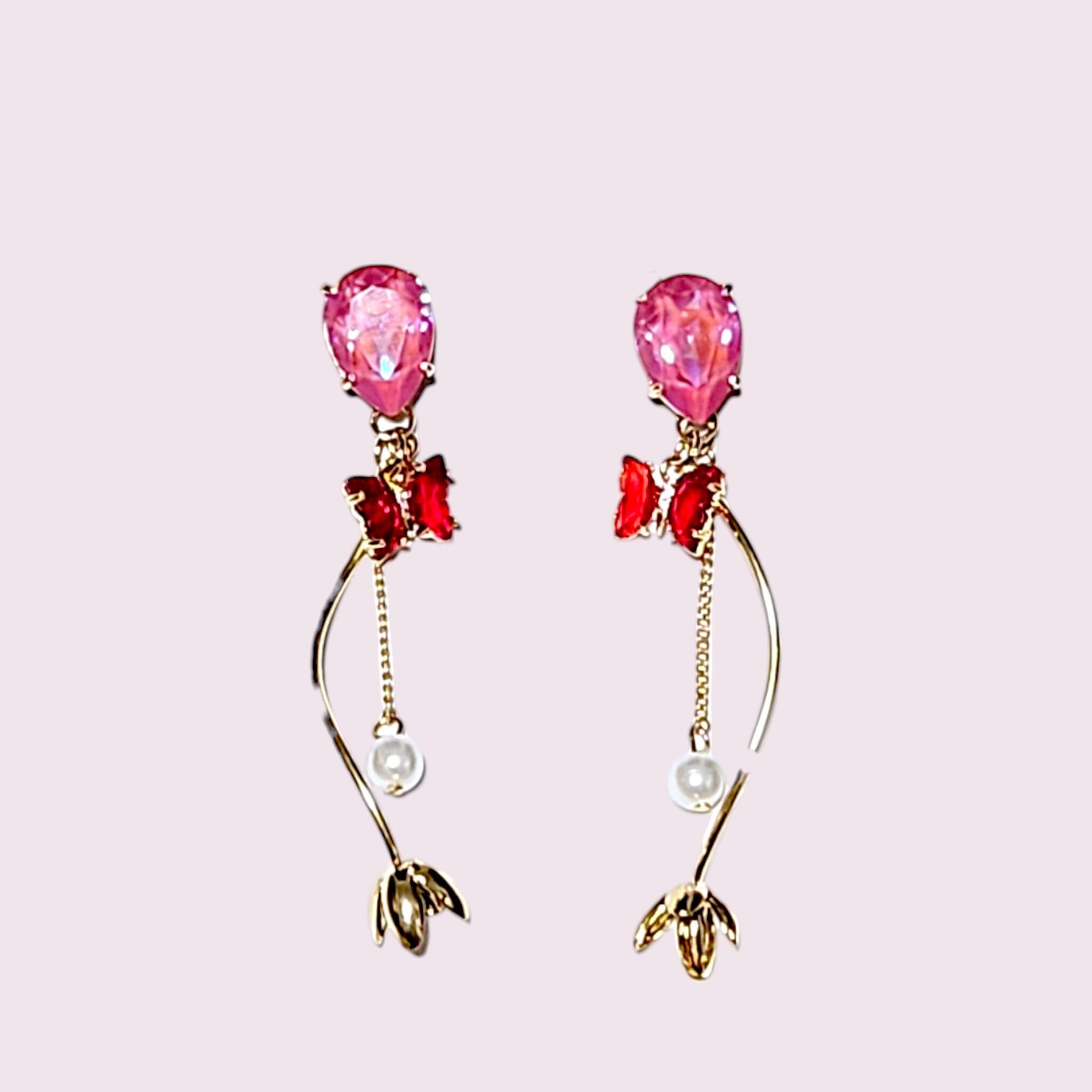 キラキラと輝くバタフライモチーフが耳元でゆらゆらと揺れ、あなたの魅力を引き立てる素敵なピアスです。可愛らしいデザインはどんなスタイルにもマッチし、特別な日にも大活躍します。