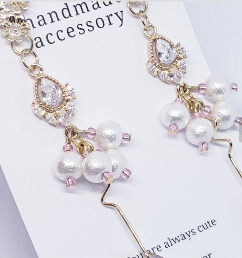 艶やかなパールときらめくピンクビジューを組み合わせた、