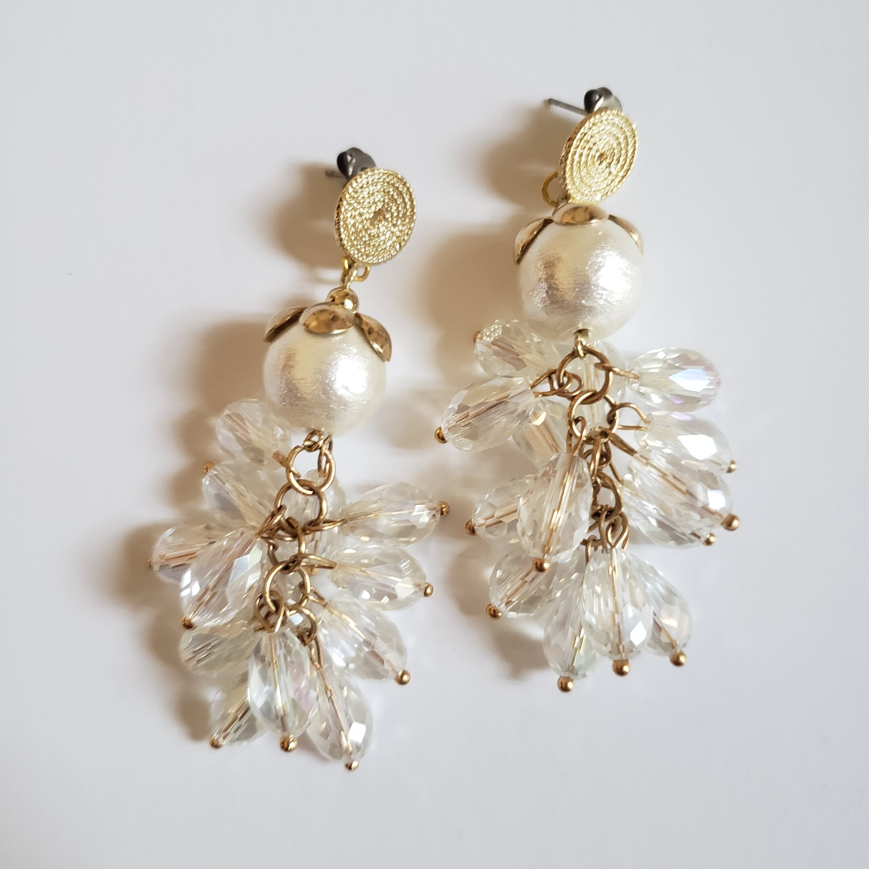 こちらはゴールドとクリア、コットンパールがとても上品に合わさっていて大人雰囲気があるピアスとなっております。