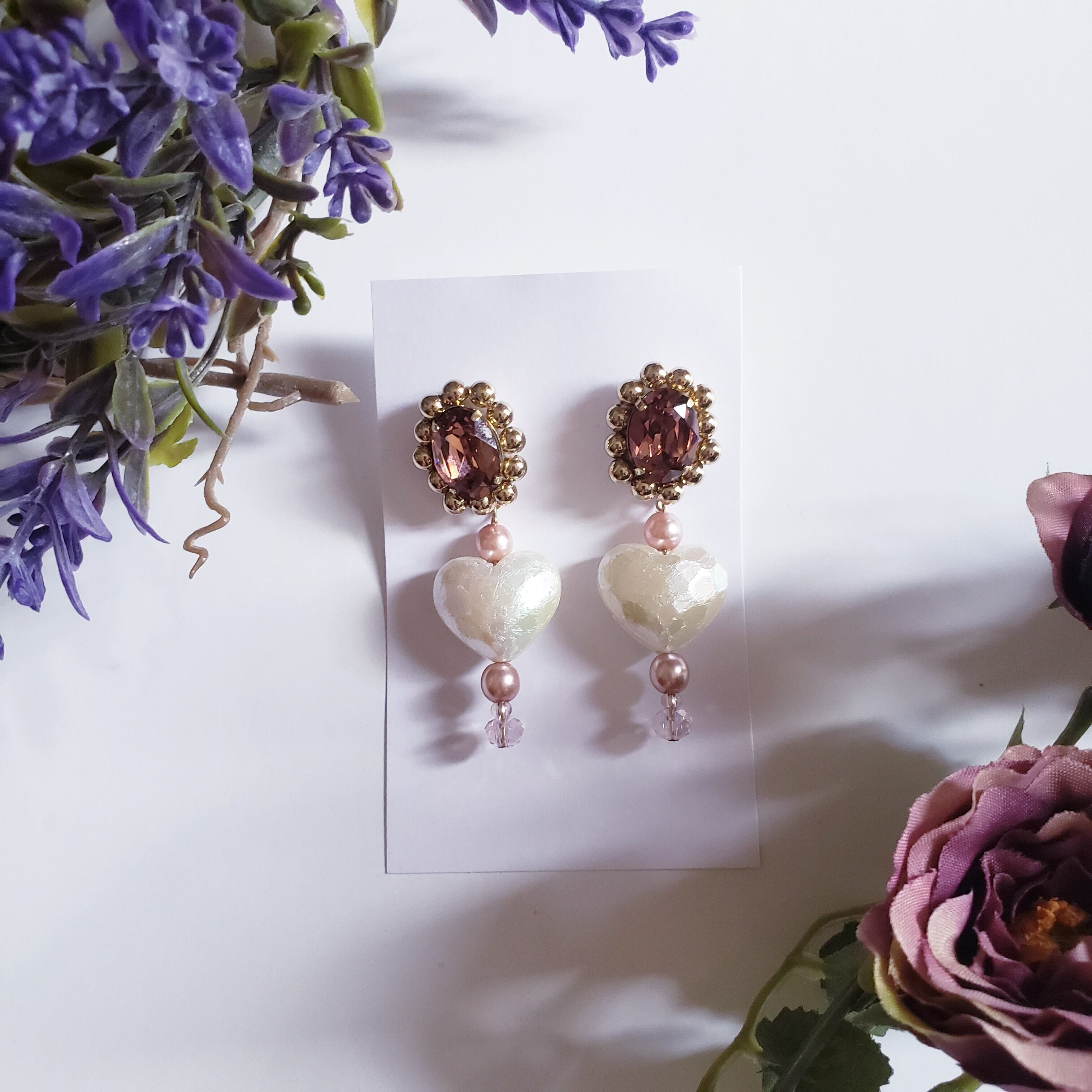 オーロラパールハートにピンクのパールやビーズがとてもかわいらしいです。