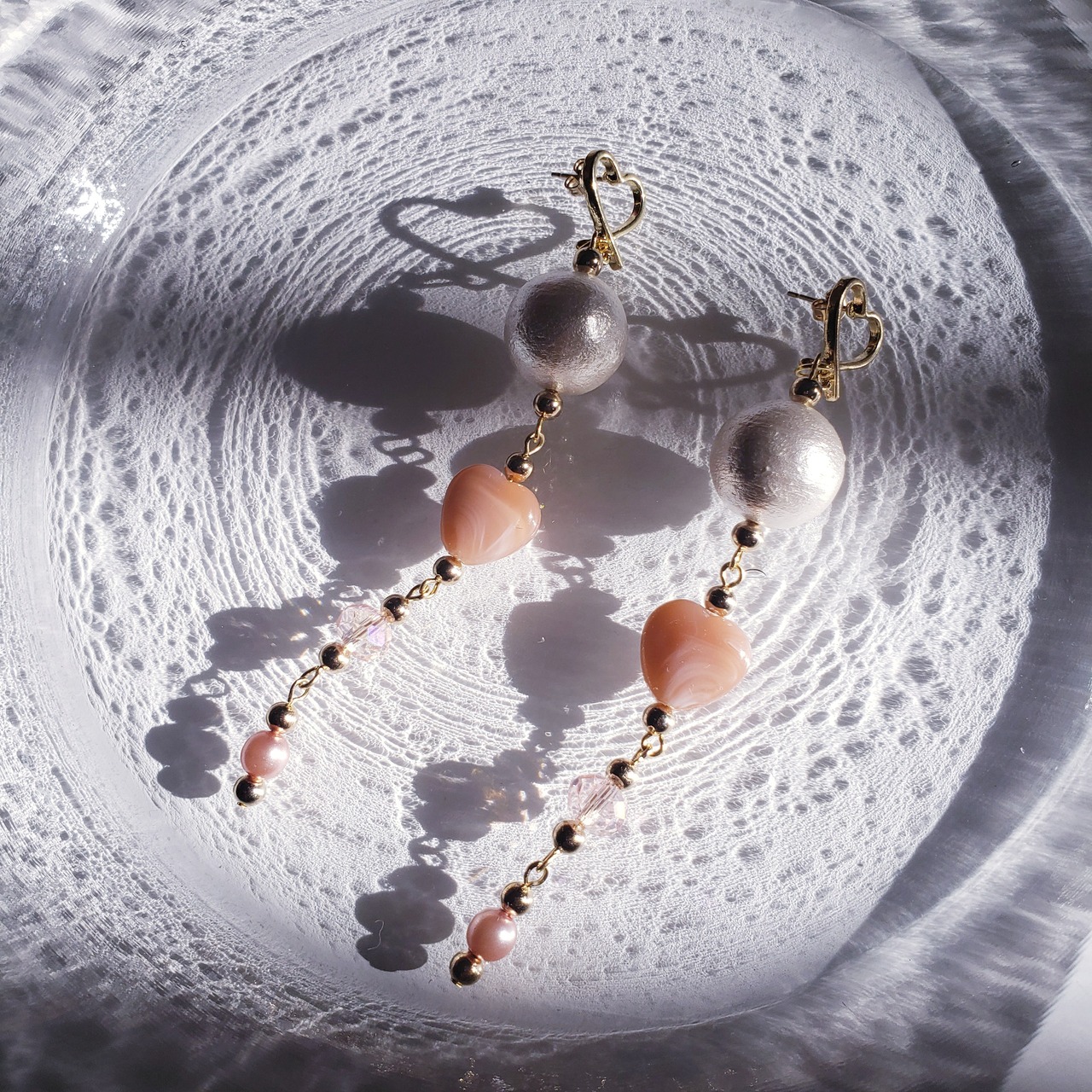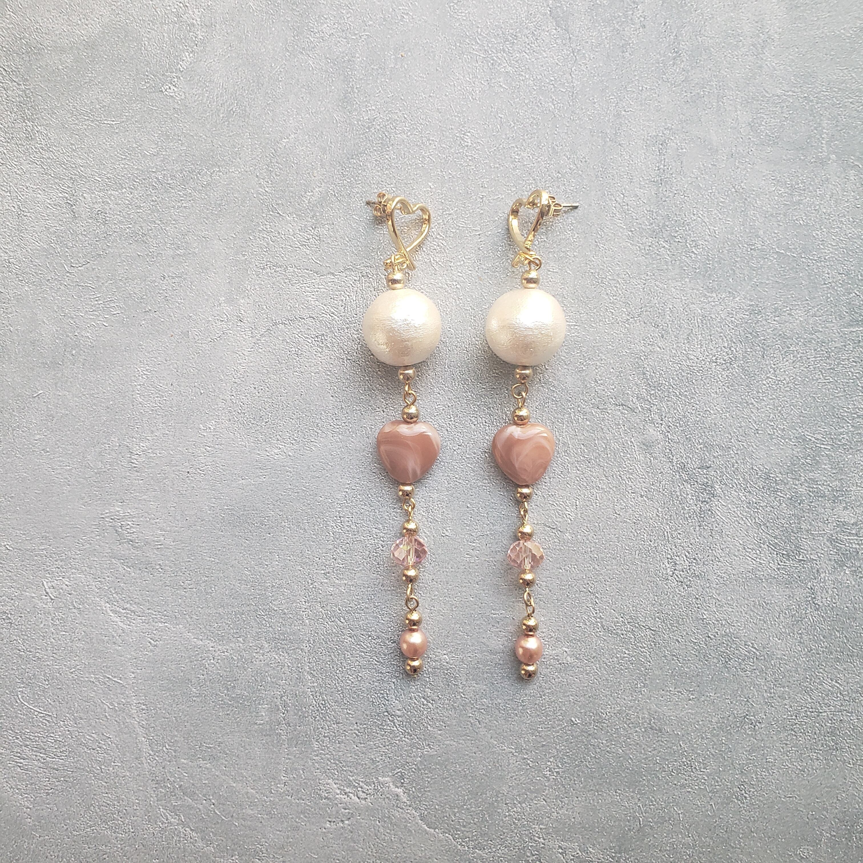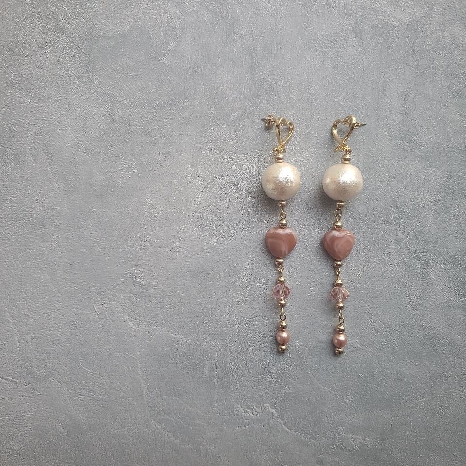 大きいコットンパールにピンクのハートで可愛らしくキュートに✨