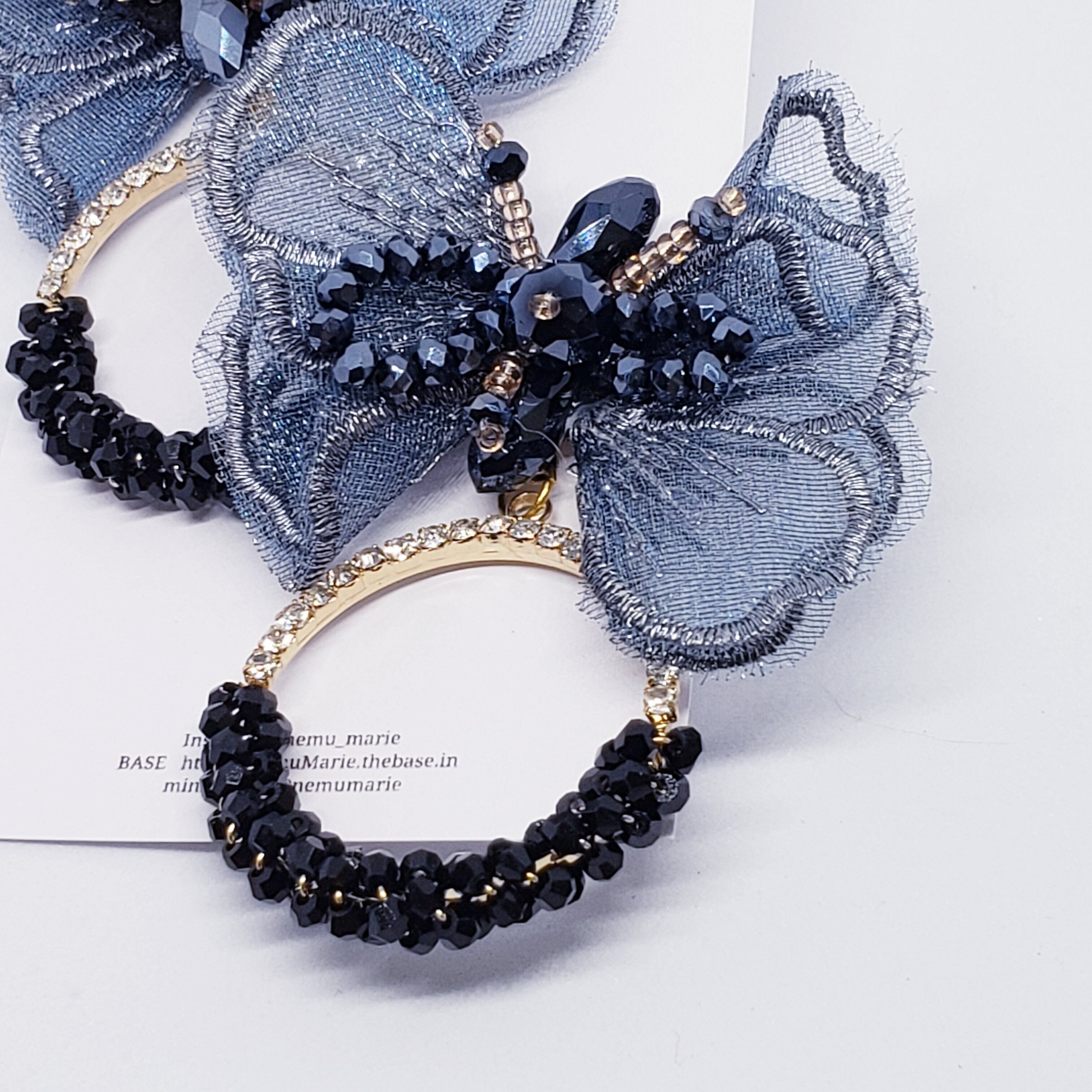 キラキラレースの蝶々にキラキラ黒のフープで甘すぎずに着用頂けます。