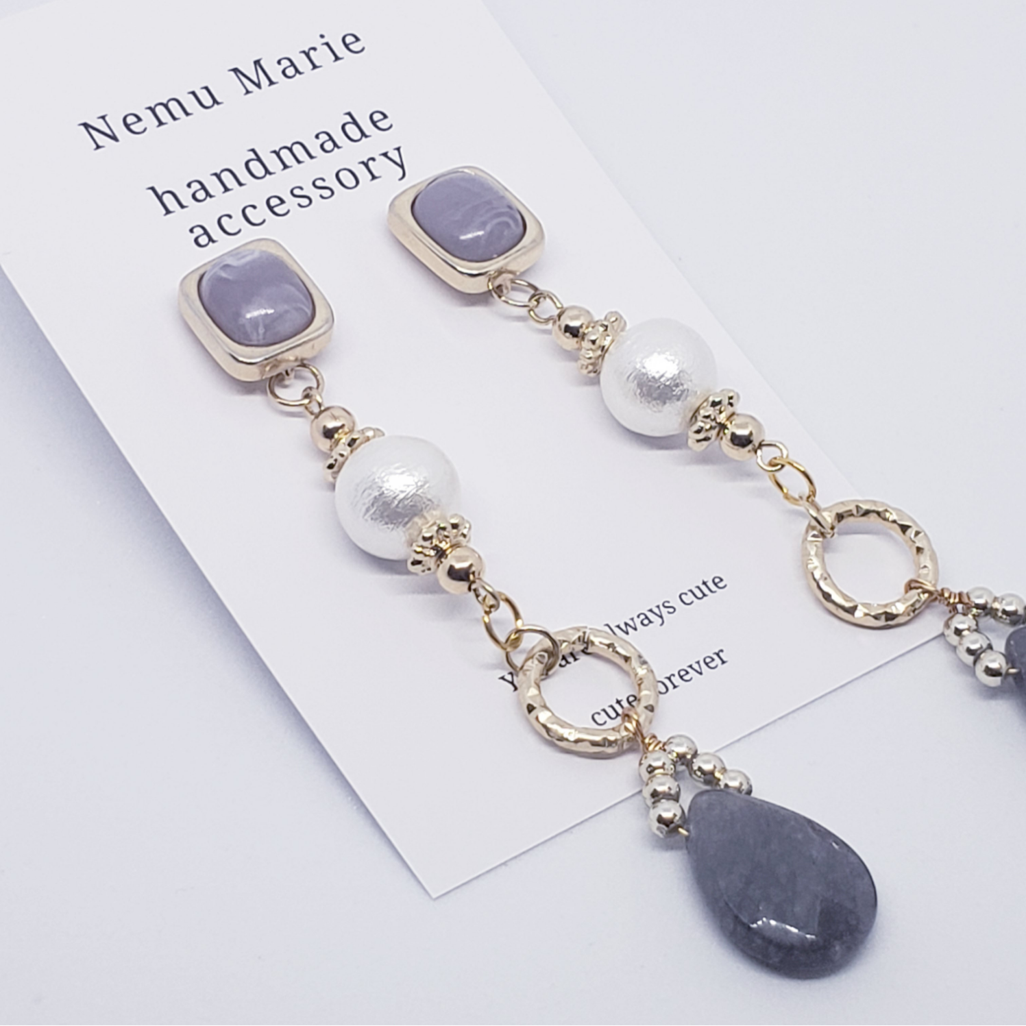 天然石 メノウ 運気向上 ハンドメイドピアス ハンドメイドアクセサリー ピアス アクセサリー 大振り 大振りピアス グレイ かわいいピアス コットンパール ロングピアス 大人ピアス