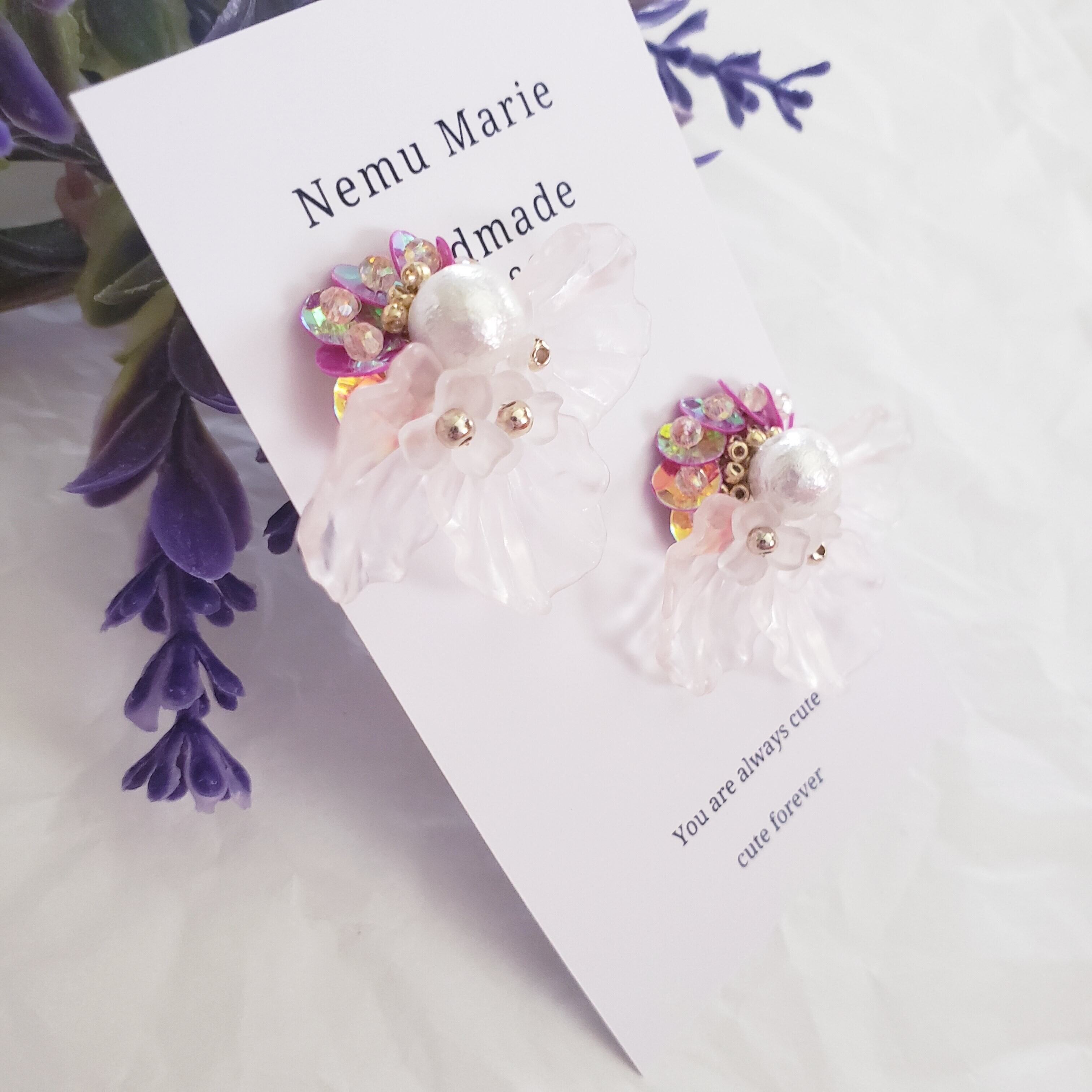 花びら 花 お花 キラキライヤリング かわいいイヤリング 大振りイヤリング