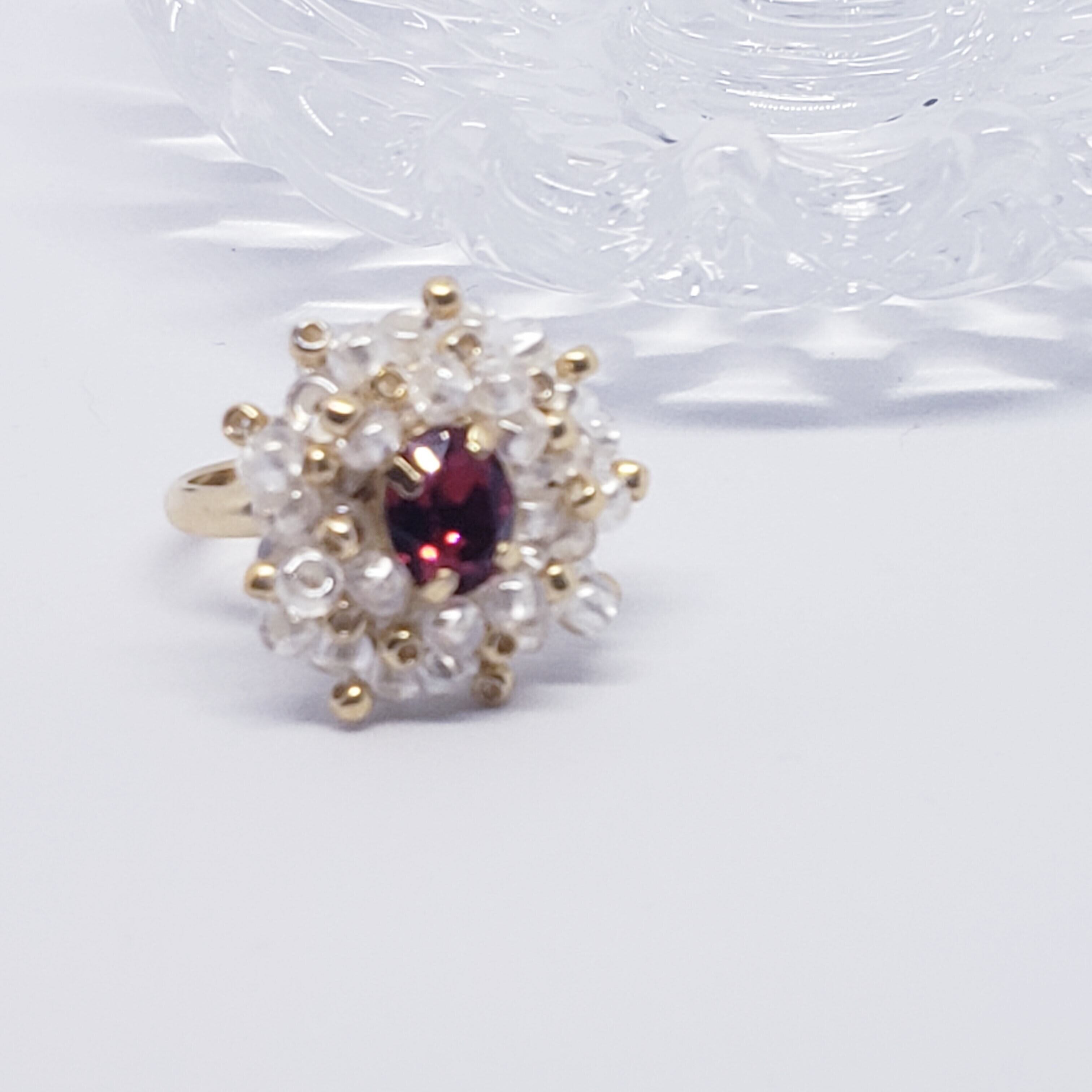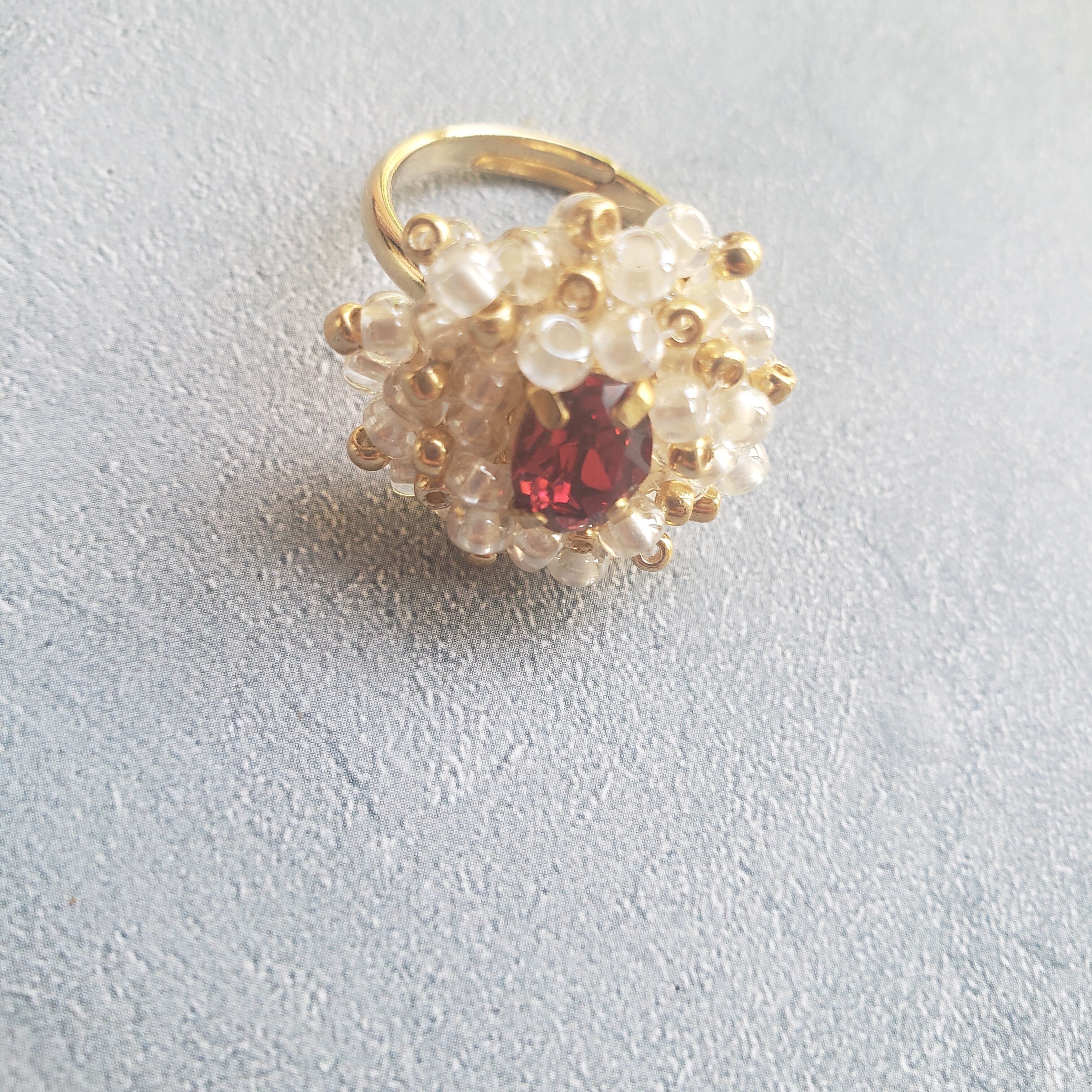 指輪 リング スワロフスキー お出かけ お呼ばれ パーティー 赤 ハンドメイドリング ハンドメイドアクセサリー ハンドメイド リング アクセサリー 大振りピアス かわいいピアス 大人ピアス お出かけ デート パーティー 二次会 10代 20代 30代