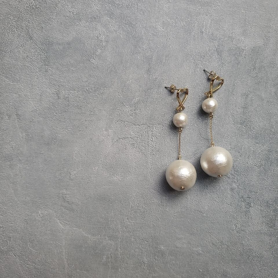 #ハンドメイドアクセサリー #ハンドメイドピアス #ピアス #アクセサリー #コットンパール #大振りピアス #大人ピアス #デート #10代 #20代 #30代 #40代 #女子 #韓国 #原宿 #お出かけ #パーティー #二次会 #ママ