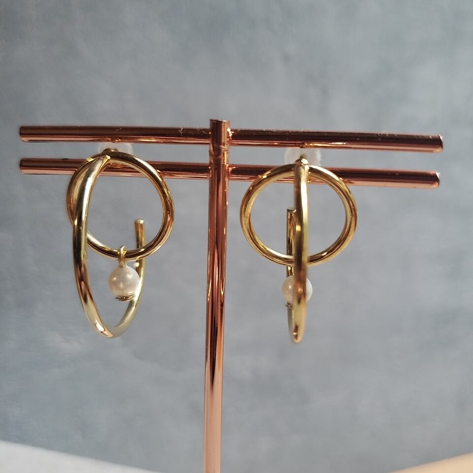 スタイリッシュなフープピアスにパールでかわいさをプラス