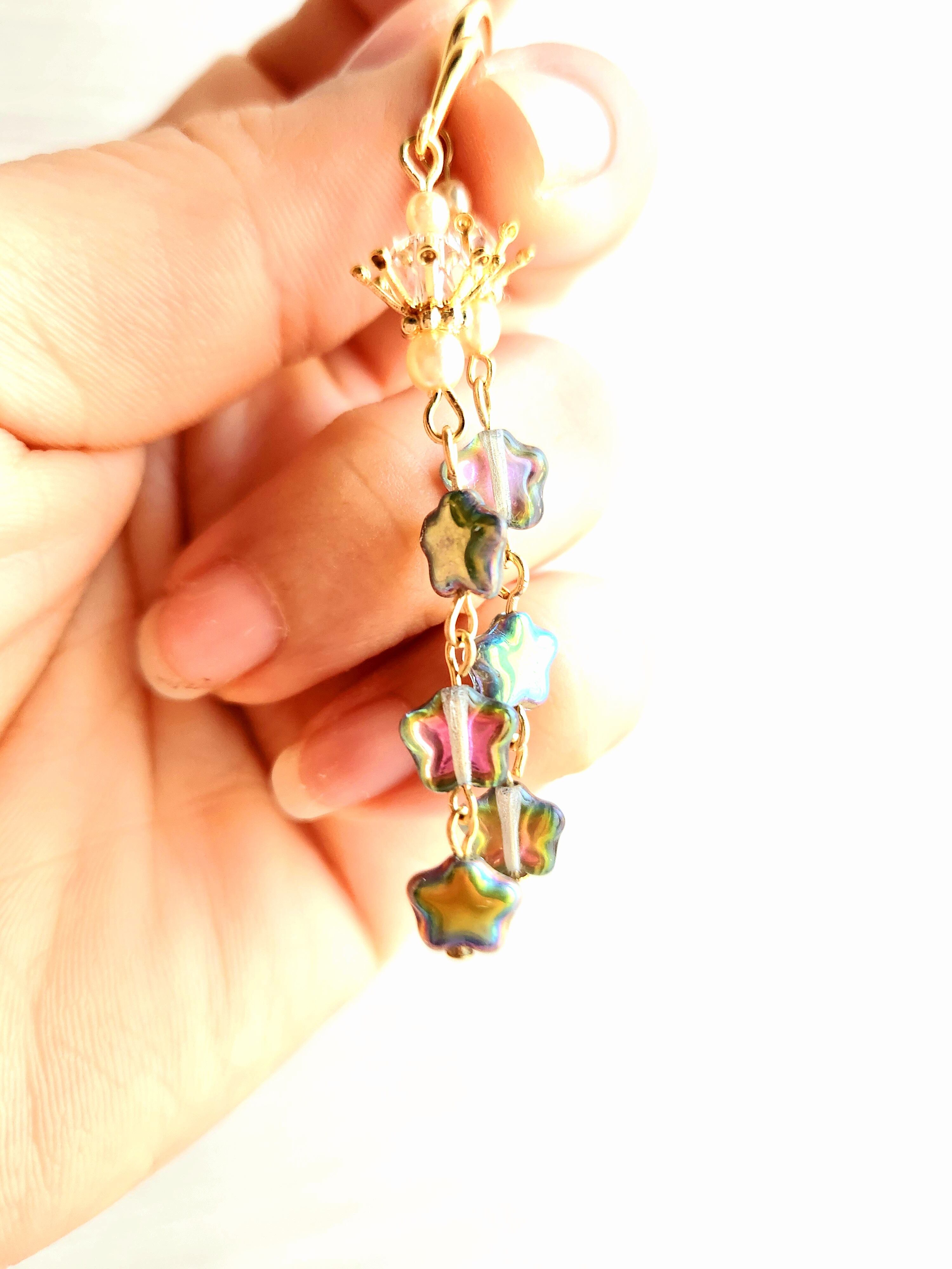 星座のような輝きが魅力のオーロラカラーのピアス。