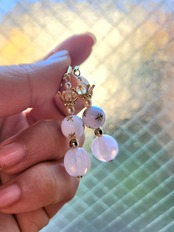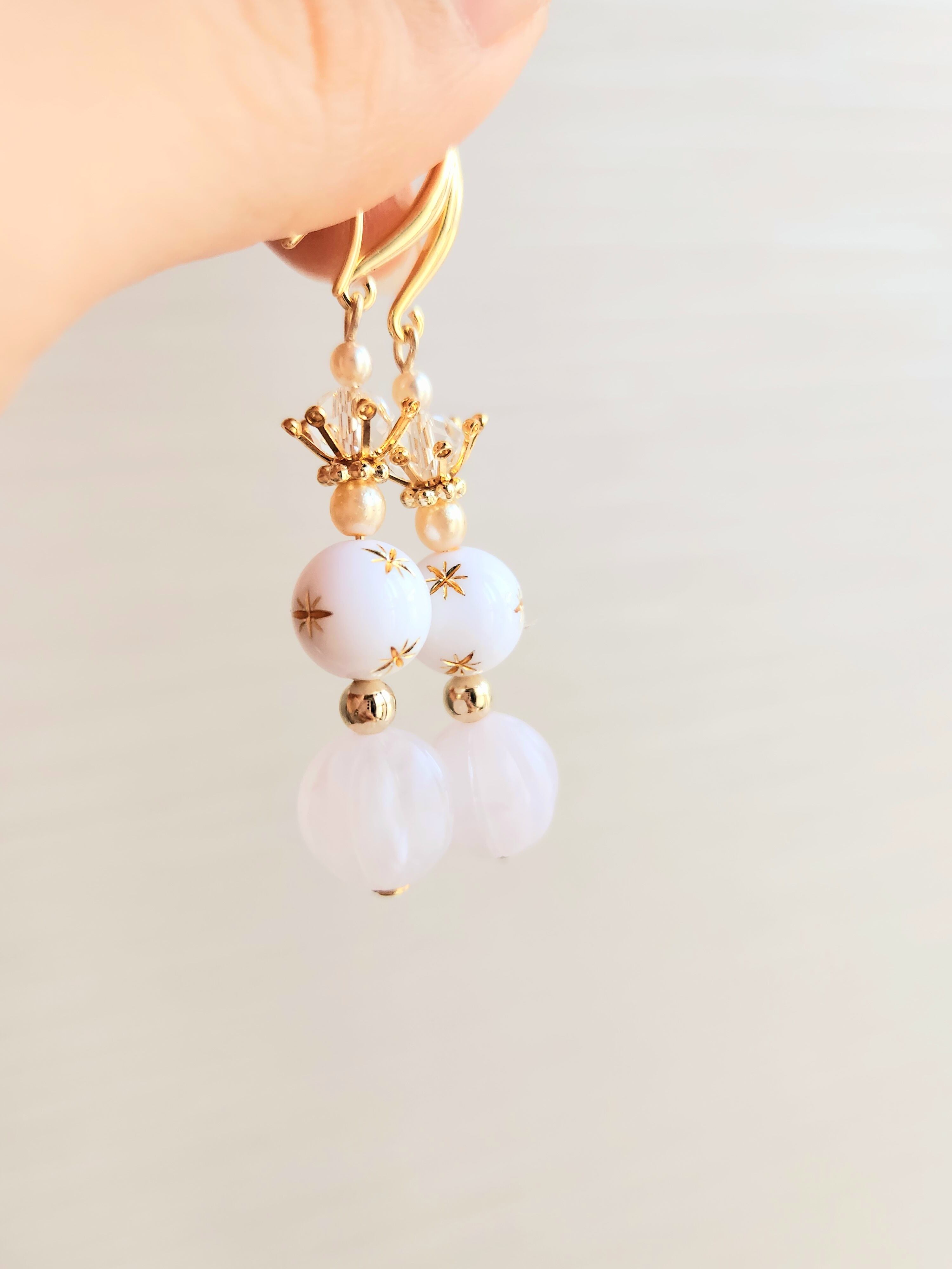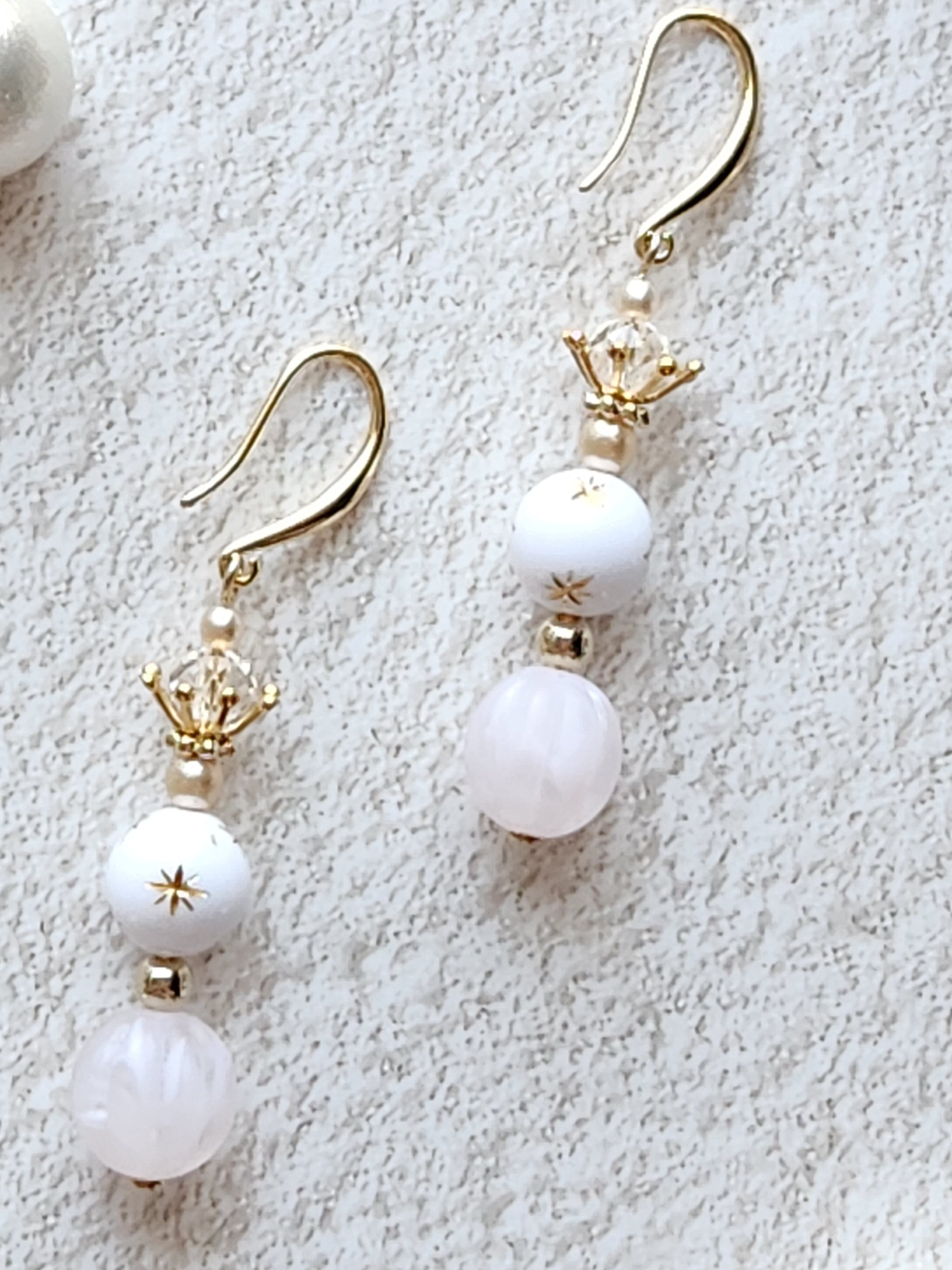 軽やかな印象を与えるホワイト×ピンクのクイーンピアス。コロンとしたフォルムがとってもキュートで、お出かけやデートなど女性らしいシーンにぴったりのアクセサリーです。さりげないが存在感を放ち、お顔周りを華やかに演出してくれます。手にした瞬間、あなたの魅力がさらに輝きだすこと間違いなし!何よりも耳元を飾るピアスが、女性の気分を上げてくれる一瞬の輝きをお届けします。