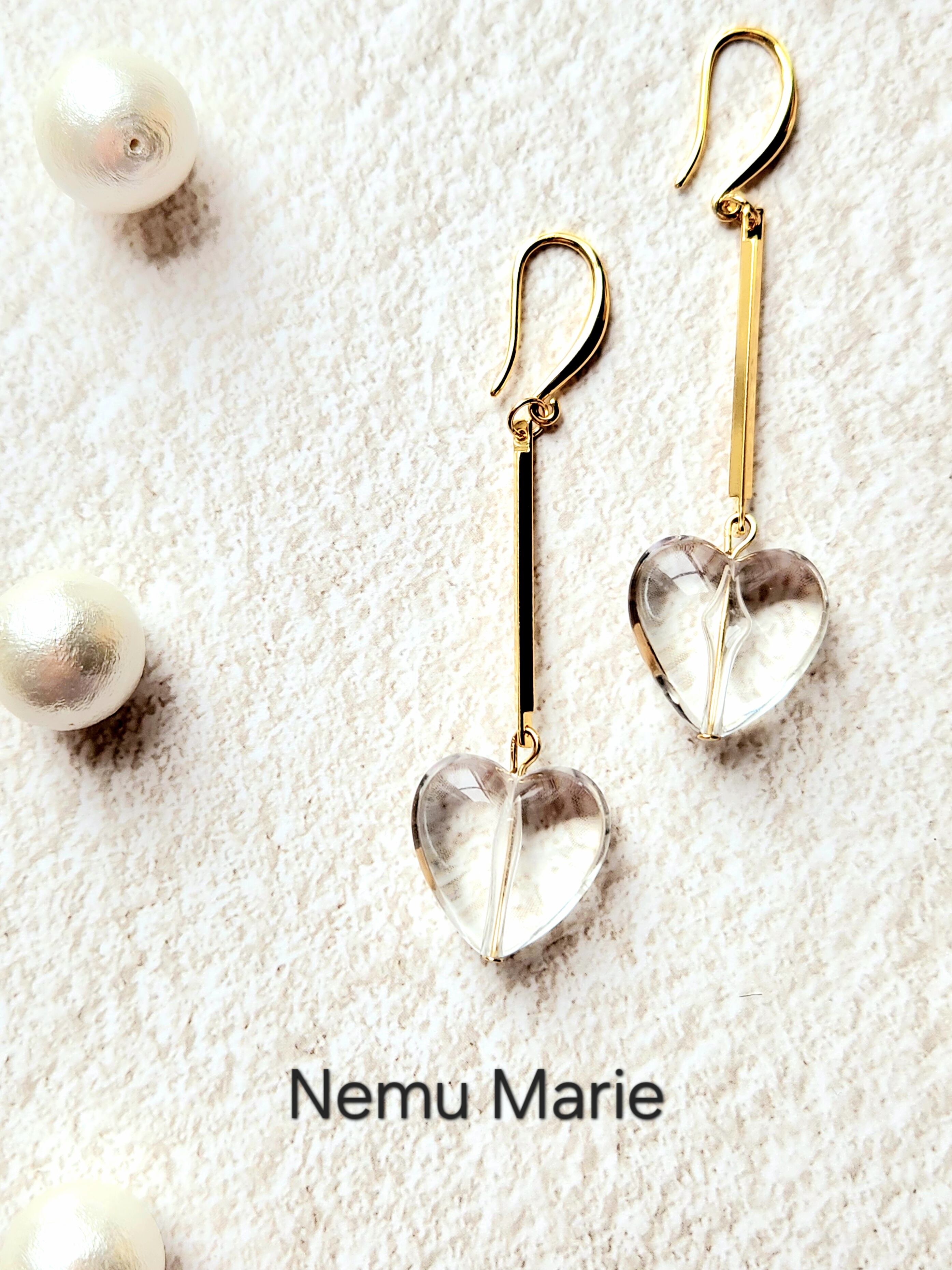 #ハンドメイドピアス#ハンドメイドアクセサリー#クリア#ハート#リング#ネックレス#指輪#ピアス#大ぶり#大振り