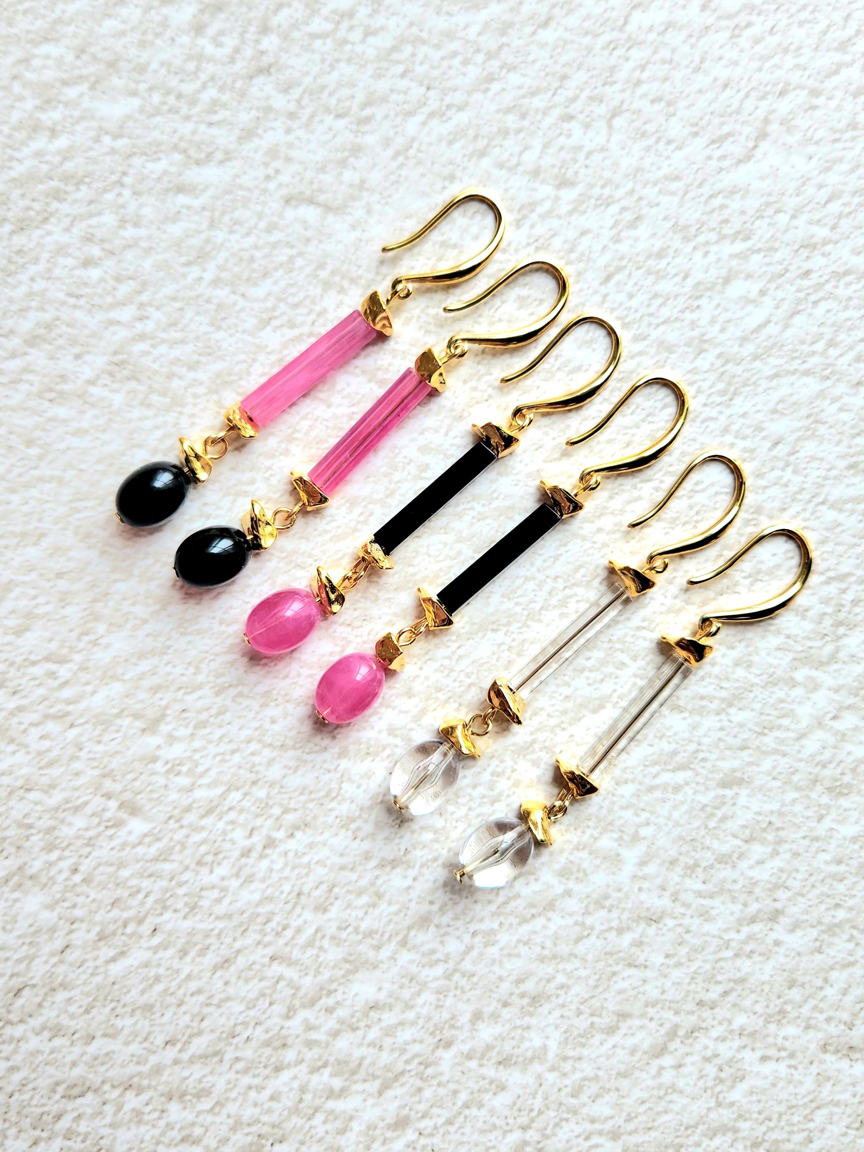 シンプルでありながら、存在感のあるピンク×ブラックのコントラストが魅力のスティックピアス。モノトーンコーディネートにぴったりなアクセントとなる一品です。軽量なので長時間つけていても耳が痛くなりにくい仕様になっています。